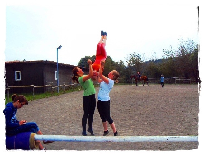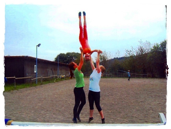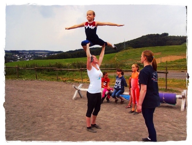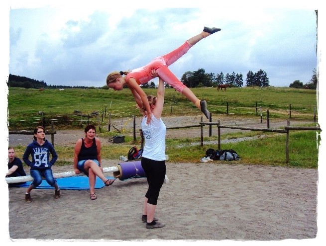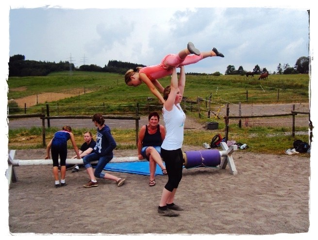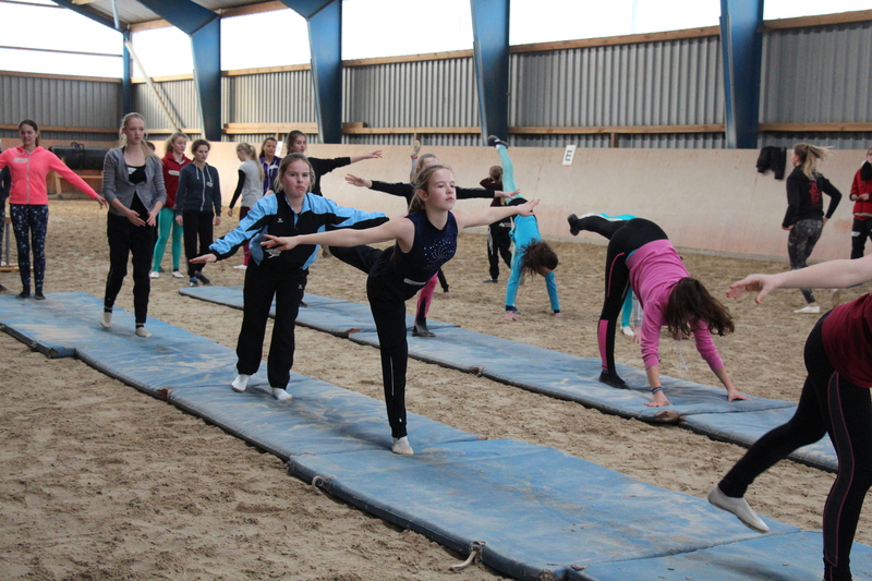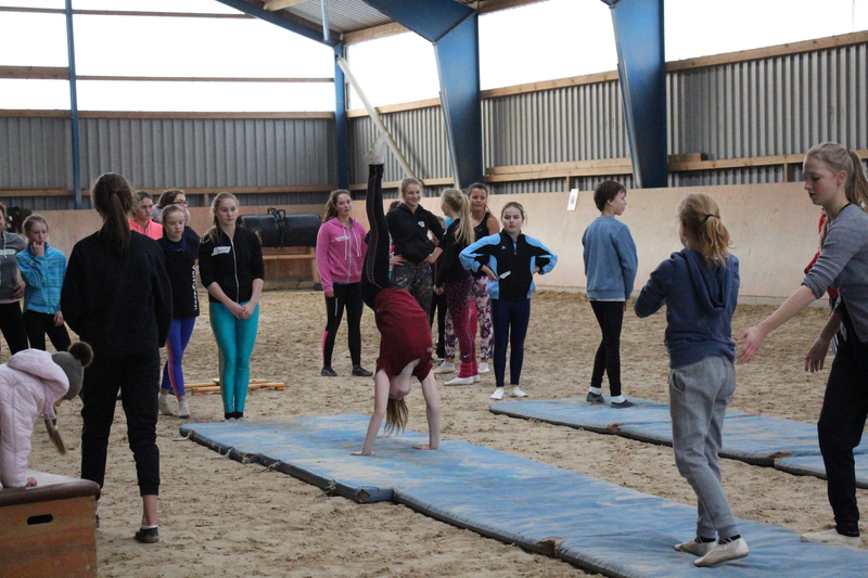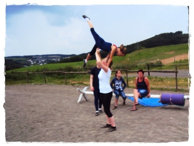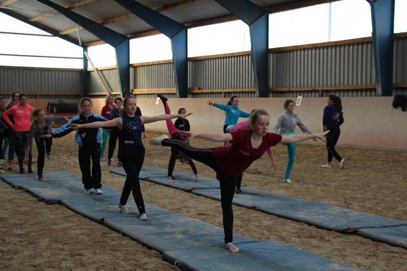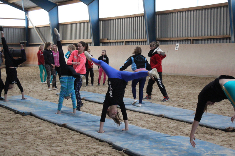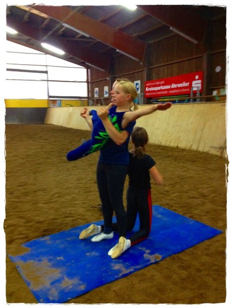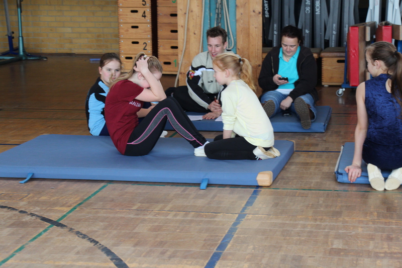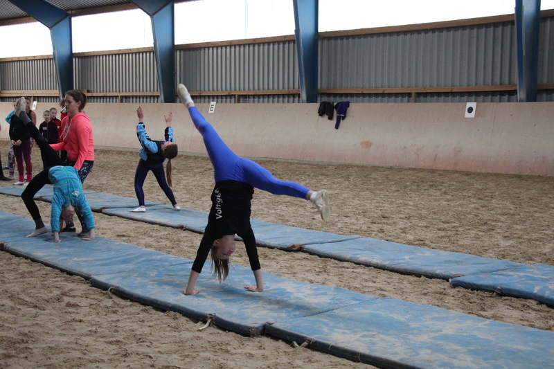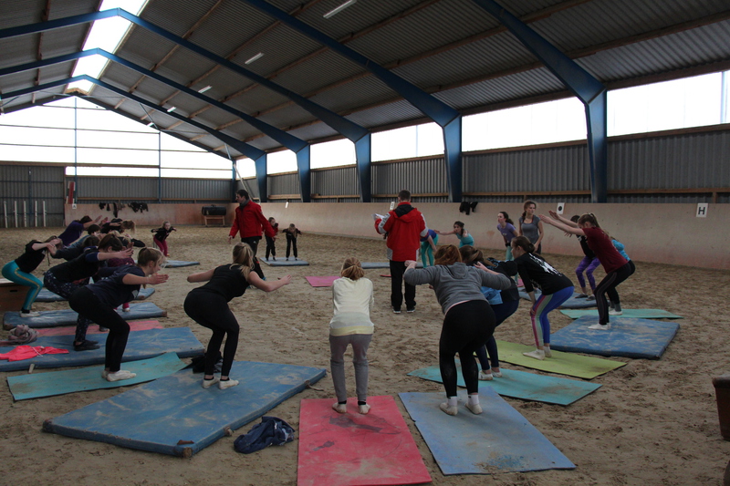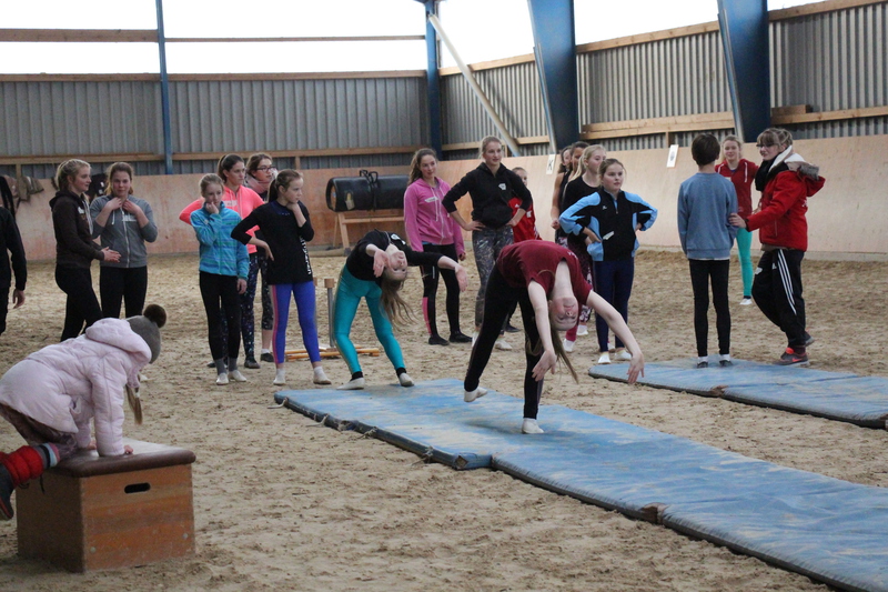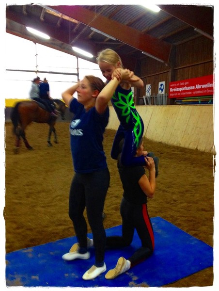 Nach einem effektiven Aufwärmtraining auf fetzige Musik wurden die Voltigierer einem Fitnesstest mit acht Stationen auf Kraft, Beweglichkeit, Gleichgewichtssinn usw. geprüft.